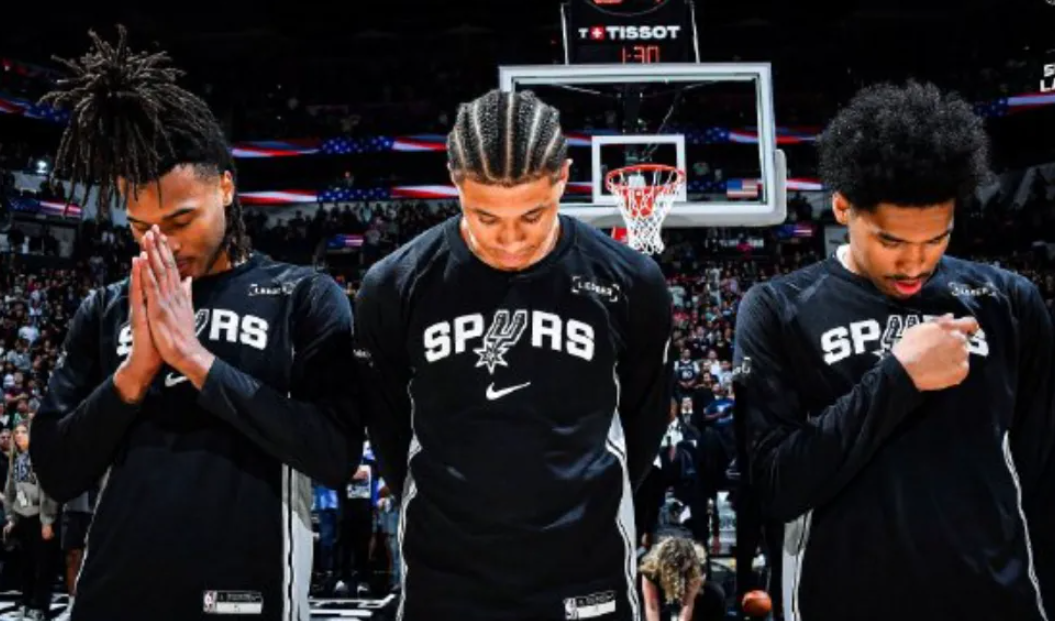 在上一场比赛里,马刺队的核心中锋文班亚马突然受伤,他摔倒之后撞伤了头部,进入了脑震荡保护程序,今天虽然参加了赛前热身,但还是没有出战。马刺队正好借助这个机会锻炼一下没有文班亚马的阵容,开拓者队是不错的演练对象。