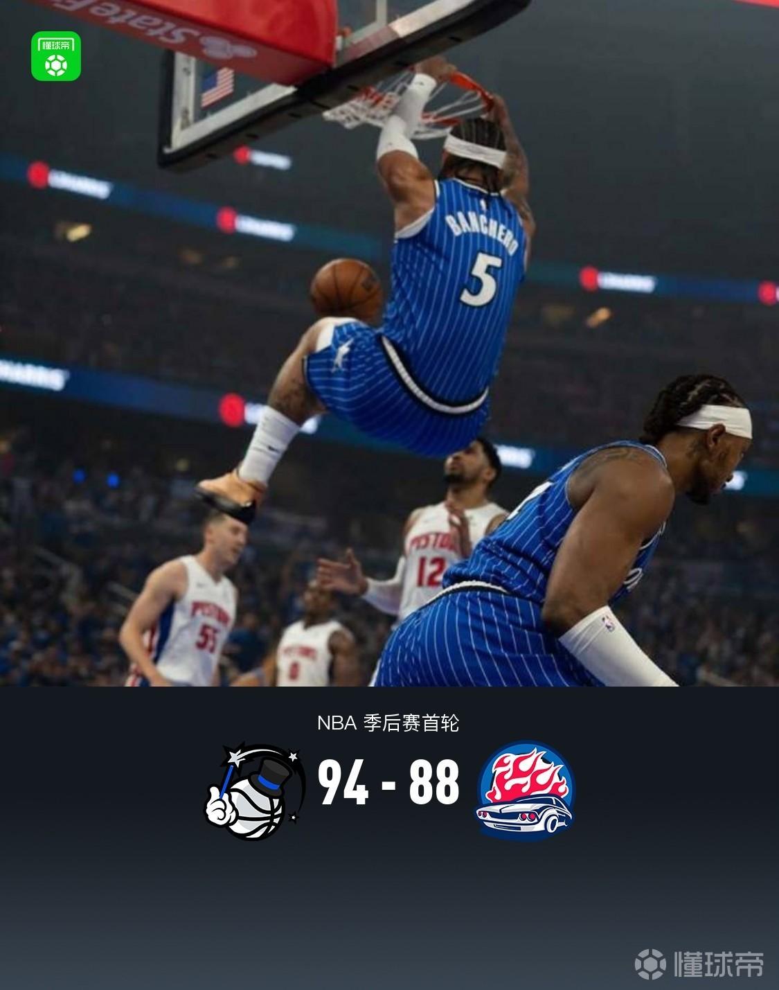 魔术94-88活塞3-1夺赛点,贝恩22+5,坎宁安25+9+8失误,班凯罗18中4