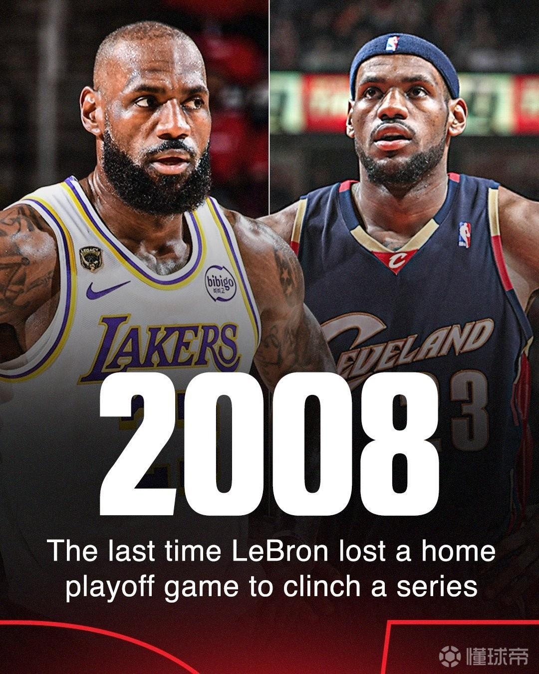 这场比赛的失利,是詹姆斯自2008年以来,首次在主场输掉系列赛的晋级战。值得一提的是,此前的纪录是詹姆斯在主场晋级战中保持的16连胜。
