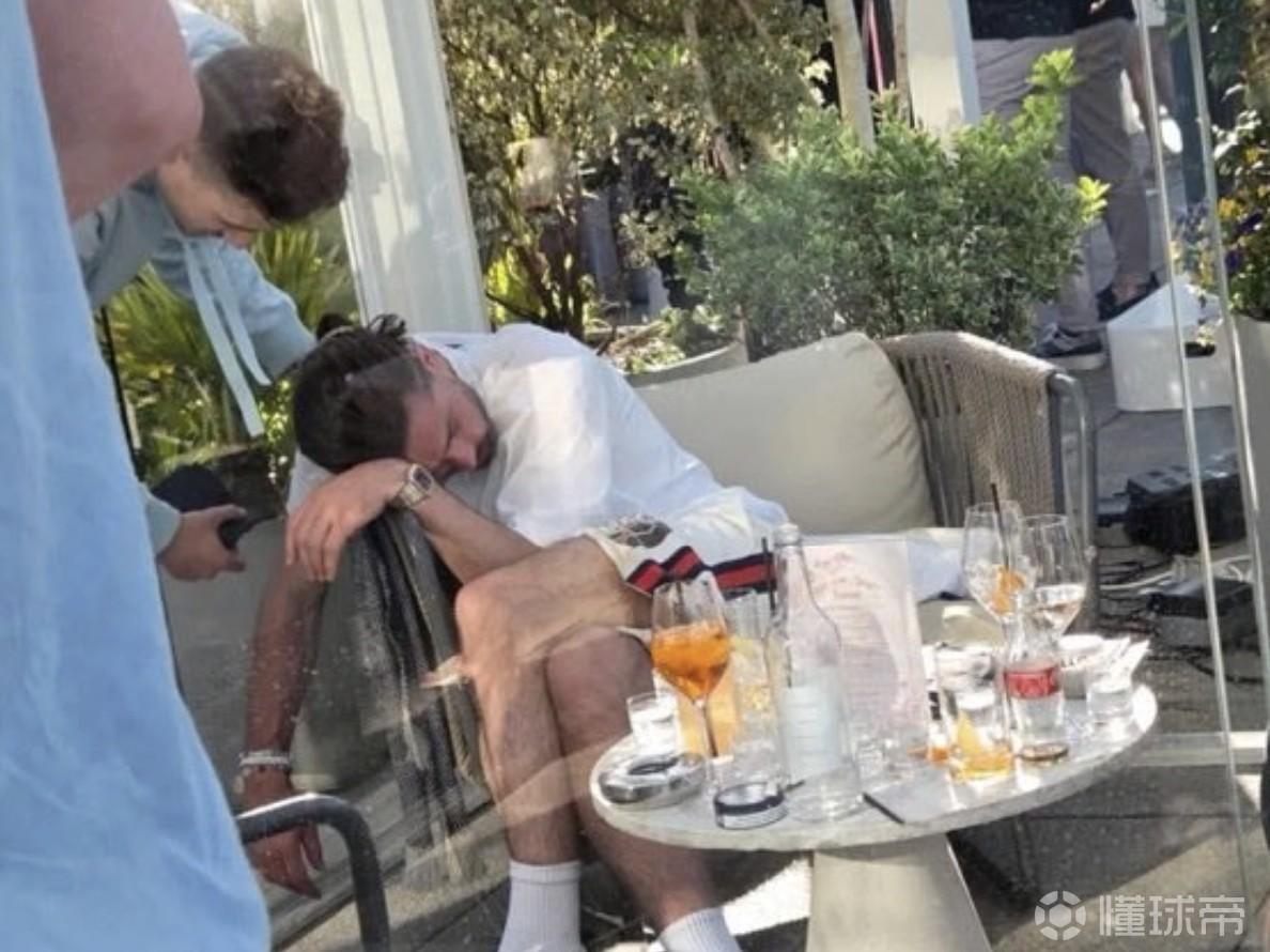 那么,在曼彻斯特一个阳光明媚的周六,当格拉利什和朋友走进一家屋顶酒吧,并在众目睽睽之下睡着时,还能发生什么?咔嚓、咔嚓、咔嚓。桌上一排色彩鲜艳的饮品——不论是否属于他——都对他的形象毫无帮助。