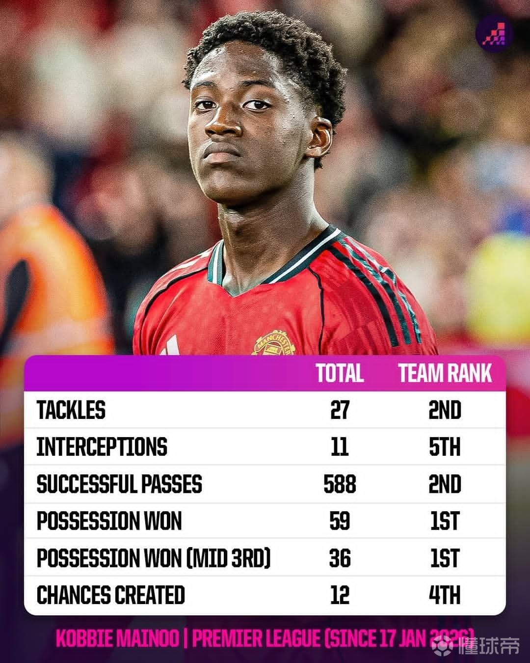 北京时间4月30日,曼联官方宣布与科比-梅努续约至2031年。据Opta Analyst统计,自2026年1月17日以来,梅努多项英超数据均位列队内前列。